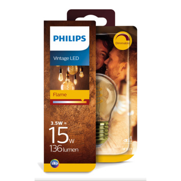 Het kogel gevormde filament van Philips bevat Led verlichting. Led is energiezuinig en heeft een lange levensduur. Ook bespaar je op je verlichtingskosten door het minder verbruiken van energie. De lichtbron heeft een lichtopbrengst van 136 lumen en een kleurtemperatuur van 2000 kelvin. Dit is te vergelijken met kaarslicht. Hiermee kun je een aangenaam warme sfeer creëren in de woon- of slaapkamer. De lamp is ook te dimmen met een lichtschakelaar. De lamp heeft een E27 fitting en past hiermee in armaturen met een grote fitting. De verlichtingsbron heeft een wattage van 3.5 Watt en valt onder energieklasse A. Dit is één van de meest zuinige energieklasses.