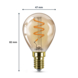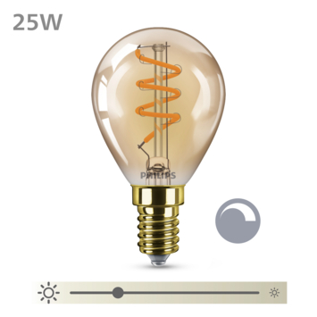 Met deze Philips LED filamentlamp zorg je voor extra sfeer in huis. Ze zorgen voor een stijlvol lichtelement en geven sfeervol warmwit licht. Deze lamp heeft een gouden coating en in de lamp zie je een dimbare lichtspiraal, wat doet denken aan gloeilampen van vroeger. Met EyeComfort, voor licht dat aangenaam is voor jouw ogen. De lamp heeft een E14-fitting, en past dus in de meeste lampen met kleine fitting.