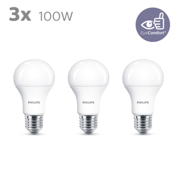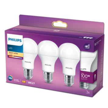 Vervang uw oude lamp met een nieuwe energiezuinige Philips LED-lamp, met warmwit licht. Deze standaardlampen verbruiken circa 80% minder energie dan traditionele lampen dankzij de nieuwste energiezuinige LED-technologie en ze gaan tien keer langer mee. Met EyeComfort, voor licht dat aangenaam is voor uw ogen. Deze lampen hebben een E27-fitting, en passen dus in de meeste lampen met grote fitting.