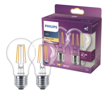 Philips LED peer E27 3,4W filament helder niet dimbaar 2 stuks