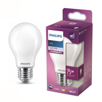 Vervang uw oude lamp met een nieuwe energiezuinige Philips LED-lamp, met koelwit licht. Deze standaardlamp verbruikt circa 80% minder energie dan traditionele lampen dankzij de nieuwste energiezuinige LED-technologie en ze gaan tien keer langer mee. Met EyeComfort, voor licht dat aangenaam is voor uw ogen. Deze lamp heeft een E27-fitting, en past dus in de meeste lampen met grote fitting.