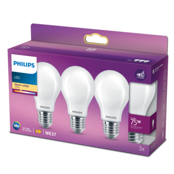 Philips LED peer E27 75W 3 stuks mat niet dimbaar