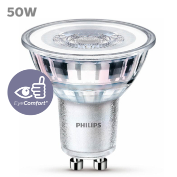 Vervang uw oude spotlamp met een nieuwe energiezuinige Philips LED-spot, met koelwit licht. Deze spot verbruikt circa 80% minder energie dan traditionele lampen dankzij de nieuwste energiezuinige LED-technologie en ze gaan tien keer langer mee. Met EyeComfort, voor licht dat aangenaam is voor uw ogen. Deze lamp heeft een GU10-fitting en gaat vaak perfect samen met uw in- of opbouwspots.