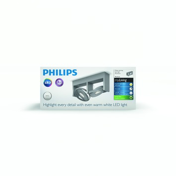 De Philips Ledino plafondspot Particon aluminium 2-lichts is een aanwinst voor ieder interieur. Deze in alle hoeken richtbare spots zijn rondom een strakke aluminium basis gebouwd en verspreiden een warm, wit licht. De architectuur doet denken aan die van professionele verlichtingssystemen. De meegeleverde LED-lampjes zijn krachtig en hebben een extreem lange levensduur. Daarmee bereikt jein sommige gevallen een energiebesparing van tot wel 80%. De Philips Ledino plafondspot Particon aluminium 2-lichts is daarmee niet alleen een smaakvolle lamp, maar ook één die vriendelijk is voor miliejeen portemonnee.