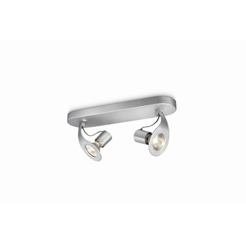 De Philips myLiving spotbalk Race aluminium 2-lichts komt uit een serie spots met een vloeiende vorm die perfect passen bij minimalistische interieurs met strakke lijnen. Omdat de spots richtbaar zijn heeft u altijd licht op de gewenste plaats, bijvoorbeeld om een object of wand te verlichten of te benadrukken. De spotbalk is daarom zeer geschikt als accentverlichting. De Philips myLiving spotbalk Race aluminium 2-lichts heeft twee GU10 fittingen en wordt geleverd inclusief lichtbronnen. De set is dus direct klaar voor installatie.