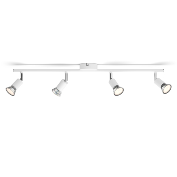 Kies voor praktische verlichting met de witte Philips Essentials Limbali opbouwspot. De vier spotlampen zijn eenvoudig te richten en zorgen voor precies het juiste licht, daar waar jij het hebben wilt. Voor duurzame en energiezuinige verlichting combineer je deze opbouwspot met een dimbare Philips LED-lamp met GU10-fitting.