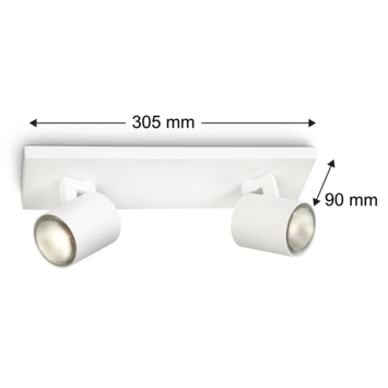 De Philips myLiving duospot Runner is een moderne spot. De moderne vormgeving wordt perfect gecombineerd met functionaliteit. De fraaie lijnen en eenvoudige vormen van de buisvormige spot in industriële stijl passen perfect in elk modern interieur. De smetteloze aluminium behuizing in het wit vult het sprankelende licht feilloos aan. De flexibele spot kun je iedere kant op draaien, zodat je het licht op elke gewenste plek kunt richten. De spot levert schitterend gebundeld licht, om een speciaal voorwerp te verlichten of een bepaalde sfeer te creëren. De spot wordt geleverd exclusief GU10 lichtbron.