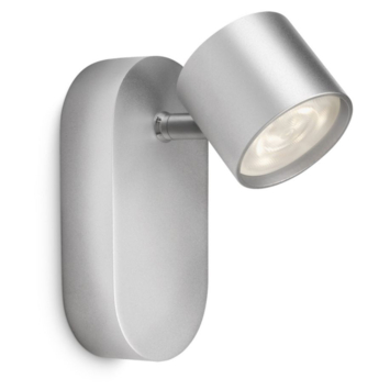 De aluminiumkleurige Philips opbouwspot is een ideale wandlamp met de LED technologieën van nu. Deze LED lamp is energiezuinig en heeft een lange levensduur. De verlichtingsbron heeft een lichtopbrengst van 500 lumen en een wattage van 4.5 watt. Dit is vergelijkbaar met 40 wattage van een ouderwetse gloeilamp. Met een kleurtemperatuur van 2700 kelvin, is deze lamp ideaal voor in de slaapkamer als je bijvoorbeeld in je avond nog een boek wilt lezen voordat je gaat slapen. De Philips spotlamp valt onder energieklasse A++. Dit is het meest zuinige energieklasse. De beschermingsklasse waar deze lamp onder valt, is de IP20. Dat houdt in dat de spotlamp stofdicht is. Kortom, dit is een prettige verlichtingsbron voor in de slaapkamer.