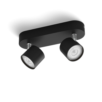 De zwarte Philips Star opbouwspot kan je gemakkelijk dimmen naar het juiste lichtniveau. Zo heb je altijd het juiste licht bij jouw activiteit. Van functioneel helder voor alledaagse taken, naar een zachter licht voor ontspanning. Deze moderne 2-lichts plafondlamp met draaibare spots past in elk interieur.