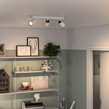 Spots zijn alle kanten op te draaien en dimbaar met de app.