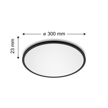 De Philips Superslim plafonnière valt op door zijn ranke ontwerp. De zwarte sierrand maakt de plafondlamp tot een stijlvolle uitbreiding van uw moderne interieur. Het warmwitte LED-licht is bijzonder krachtig en schijnt meteen op volle kracht. Met SceneSwitch-functie kunt u de lamp met behoud van de oorspronkelijke lichtkleur dimmen met uw standaard lichtschakelaar. Wanneer u de lamp uitschakelt, en na langer dan vijf minuten terug inschakelt, dan gaat de lamp aan met de laatste gekozen instelling.