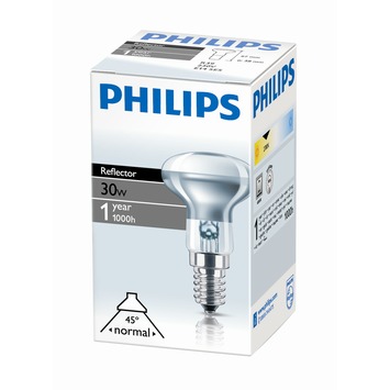 De Philips Reflectorlamp 30W E14 kleine fitting r39 is een reflector lamp met een NR39-vorm, geschikt voor een kleine fitting. Dankzij de reflector biedt deze lamp gericht licht, waardoor u zelf lichteffecten kunt creëren. Door het gebruik van persglas is deze lamp extra stevig, wat haar ideaal maakt voor gebruik op plaatsen waar standaard lampen te kwetsbaar zijn. De Philips Reflectorlamp 30W E14 kleine fitting r39 is tevens geschikt voor buiten gebruik. Ook kunt u de lamp dimmen, waardoor u zelf kunt bepalen hoeveel licht u nodig heeft. Kortom, de Philips Reflectorlamp 30W E14 kleine fitting r39 is een geschikte lamp voor dimbare accentverlichting, zowel binnen als buiten.