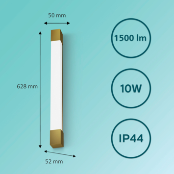 De Philips Rover badkamerspot heeft een strak, rechthoekig en watervast ontwerp en is geschikt voor montage boven of naast de badkamerspiegel. De messingkleurige afwerking geeft de lamp een moderne en luxe uitstraling die in vrijwel elk interieur past.