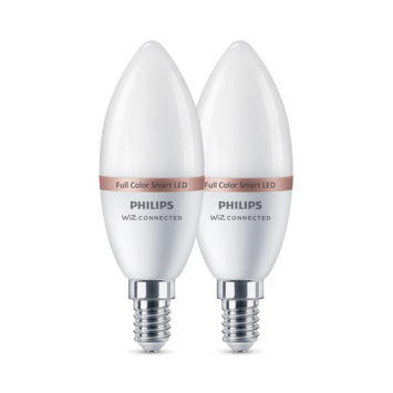Geef je huis sfeer met deze twee gekleurde Philips Smart LED kaarslampen met E14-fitting. De lampen zijn eenvoudig te bedienen via de WiZ app. Zo kun je de lampen gemakkelijk dimmen, feller zetten of één van de voorgeprogrammeerde lichtscènes kiezen. Gebruik ritmes om je lampen op bepaalde tijden automatisch van wittint of kleur te laten veranderen. Je kunt de ritmes naar wens aanpassen door verschillende dynamische lichtscènes te combineren. Wat dacht je van lampen die doen denken aan knus kaarslicht, een zomerse dag of een prachtige oranje zonsondergang? Gemakkelijk te bedienen via je eigen wifinetwerk met de WiZ app of je stem.