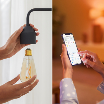 Het warme tot koelwitte licht van deze twee druppelvormige Philips Smart LED filamentlampen met een gouden gloed geven elke ruimte een vintage uitstraling. De lampen met E27-fitting zijn eenvoudig te bedienen via de WiZ app. Dim de lampen, zet ze feller of kies één van de voorgeprogrammeerde lichtscènes. Stel bijvoorbeeld een 24-uurs ritme in en word wakker met koel licht om met wat extra energie aan de dag te beginnen. 's Avonds laat wordt het licht automatisch wat warmer, zodat je lekker ontspannen onder de wol kunt kruipen. Ontdek nog veel meer ritmes en scènes, waar je elke dag wat aan hebt. Gemakkelijk te bedienen via je eigen wifinetwerk met de WiZ app of je stem.