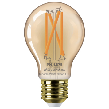 Geniet van slim licht met een vintage uitstraling met deze Philips Smart LED filamentlamp in een gouden kleur. De lamp met een grote E27-fitting is eenvoudig te bedienen via de WiZ app. Dim de lamp, zet hem feller of kies één van de voorgeprogrammeerde lichtscènes. Stel bijvoorbeeld een 24-uurs ritme in en word wakker met koel licht om met wat extra energie aan de dag te beginnen. 's Avonds laat wordt het licht automatisch wat warmer, zodat je lekker ontspannen onder de wol kunt kruipen. Ontdek nog veel meer ritmes en scènes, waar je elke dag wat aan hebt. Gemakkelijk te bedienen via je eigen wifinetwerk met de WiZ app of je stem.