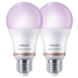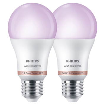 Geef elke ruimte in je interieur kleur met de prachtige lichttinten van deze twee gekleurde Philips Smart LED lampen met E27-fitting. De lampen zijn eenvoudig te bedienen via de WiZ app. Zo kun je de lampen gemakkelijk dimmen, feller zetten of één van de voorgeprogrammeerde lichtscènes kiezen. Gebruik ritmes om je lampen op bepaalde tijden automatisch van wittint of kleur te laten veranderen. Je kunt de ritmes naar wens aanpassen door verschillende dynamische lichtscènes te combineren. Wat dacht je van lampen die doen denken aan een knisperend haardvuur, een blauwe oceaan of een prachtig kleurrijk feestje? Gemakkelijk te bedienen via je eigen wifinetwerk met de WiZ app of je stem.