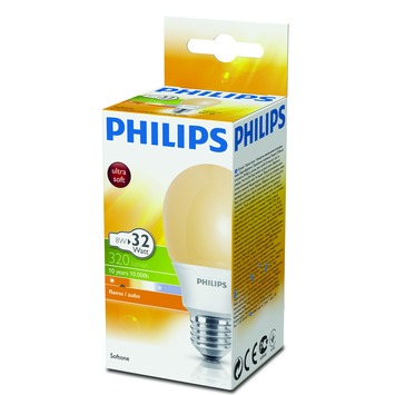 De Philips Softone spaarlamp E27 8W flame levert warm licht. Met slechts een vermogen van 8W kan de lamp een lichtopbrengst leveren van 330 lumen, hierdoor bespaart u op uw energieverbruik. De verwachte levensduur van deze spaarlamp is 8000 uur waardoor de lamp niet snel aan vervanging toe is. Met deze Philips Softone spaarlamp haalt u een duurzame lamp met een prettig sfeervol licht in huis. Deze energieklasse A spaarlamp beschikt over een grote fitting. Kortom, de Philips Softone spaarlamp E27 8W flame is uitermate geschikt voor algemene ruimtes.