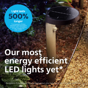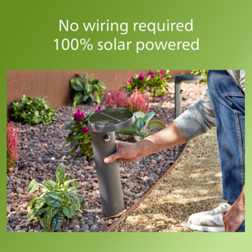 De Philips Tyla sokkellamp werkt op zonne-energie. Zo verlaag je niet alleen thuis het energieverbruik je vermindert ook de CO2-uitstoot. Met een levensduur van 50.000 uur gaat deze buitenlamp meer dan 5 keer langer mee dan de equivalenten van Philips LED-buitenverlichting. Daarnaast heeft deze antracietkleurige sokkellamp voor buiten een geïntegreerde bewegingssensor waardoor hij alleen aan staat als het nodig is. Hiermee bespaar je eenvoudig geld en energie in combinatie met gemakkelijk installatie zonder het gedoe van bedrading.