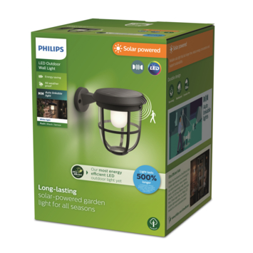 De Radii Ultra Efficient LED-wandlamp op zonne-energie is ontwikkeld door Philips en maakt gebruik van nieuwe technologie om uitstoot te verminderen, materiaalverspilling tegen te gaan en het energieverbruik te verlagen. Deze Solar lampen met bewegingssensor van Philips schijnen altijd een beetje, maar gaan pas op volle sterkte schijnen als er beweging gedetecteerd wordt. Daarenboven kan je de Radii producten met elkaar verbinden via een ingebouwde bluetooth functie, zodat alle producten op volle sterkte gaan branden zodra één van hen een beweging detecteert. Het ultieme solar product voor optimale veiligheid en comfort. Deze Ultra Efficiënte wandlampen kunnen urenlang licht geven zonder afhankelijk te zijn van direct zonlicht, waardoor ze zelfs in tijden van slecht weer uitstekend werken.