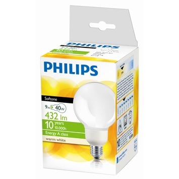 De Philips spaarlamp Globe E27 8W warm wit is een prettige lamp voor een gezellige sfeer. Met een vermogen van 9W en een lichtopbrengst van 410 lumen behoort deze lamp tot energieklasse A. Door de levensduur die geschat wordt op 10000 uur, is deze lamp voorlopig nog niet aan vervanging toe. Met deze Philips spaarlamp heeft u een lamp die warm, wit licht uitstraalt. De lamp is geschikt voor een grote fitting. Kortom, de Philips spaarlamp Globe E27 8W warm wit is een prettige sfeervolle verlichting.