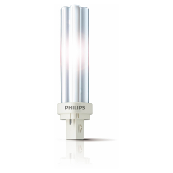 De Philips spaarlamp PLC G24-2 18W is een efficiënte, staafvormige spaarlamp geschikt voor een G24 2-pins fitting. Dankzij de brugtechnologie garandeert deze lamp optimale prestaties en een hoger rendement dan bij gebogen technologie. Met een verwachte levensduur van 10000 uur zal de lamp niet snel aan vervanging toe zijn. Deze Philips spaarlamp is dan ook een lamp die typisch gebruikt wordt in winkel-, horeca-, en kantoortoepassingen. Doordat de lamp slechts een vermogen van 18W kan leveren, bespaart u op uw energieverbruik zonder op de helderheid van het licht te moeten inleveren. Kortom, de Philips spaarlamp PLC G24-2 18W biedt efficiëntie voor het verlichten van specifieke ruimtes.