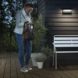 Makkelijk op te hangen. Hoek, afstand en tijd van branden in te stellen. Geeft prima licht.
