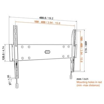 Deze vaste TV-beugel van Physix by Vogel's komt slechts 2,7 cm van de wand. Deze steun is geschikt voor TV's van 81cm tot 140cm of van 32" tot 55". Deze maten worden diagonaal gemeten. Het maximale gewicht van de TV is 30kg. Bij deze steun worden alle bevestigingsmaterialen meegeleverd. De maximale bevestigingsmaten (VESA) van de TV zijn 400 x 400mm.