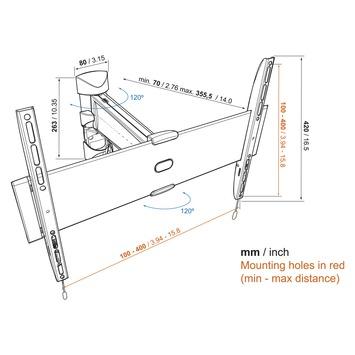 Deze draaibare TV-steun van Physix by Vogel's komt slechts 7 cm van de wand. De steun is geschikt voor TV's van 81cm tot 140cm of van 32" tot 55". Deze maten worden diagonaal gemeten. Het maximale gewicht van de TV mag 30kg bedragen. Bij deze beugel worden alle bevestigingsmaterialen meegeleverd. De maximale bevestigingsmaten (VESA) van de TV zijn 400 x 400mm.