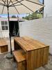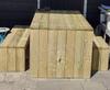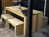 Picknicktafel modernDeze moderne picknicktafel bestaat uit een tafel, een bankje en 2 stoeltjes. De set is gemakkelijk te monteren. Deze setis gemaakt van geïmpregneerd vurenhout, wat onder andere houtrot tegengaat. De set is ook volledig overschilderbaar om een eigen kleur hieraan te geven.Maten