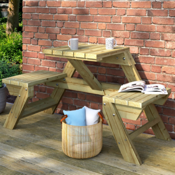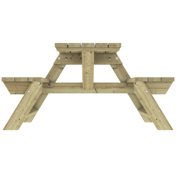 Gemaakt van geïmpregneerd grenen, is deze picknicktafel niet alleen leuk om te zien, maar ook nog eens bijzonder stevig. Dankzij de vacuümdrukimpregnatie blijft het hout tot wel 15 jaar mooi en bestand tegen schimmels en andere invloeden van het weer. Dit maakt de tafel perfect voor buitengebruik!