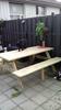 Degelijke picknicktafel met opklapbare banken! Kunnen moeiteloos 6 volwassenen aan zitten. Pakket is wel vrij zwaar, niet alleen te tillen. 95% is voorgeboord, voor paar schroeven een boormachine nodig. Goede value for money!