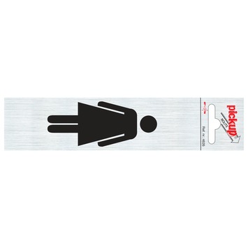 Het Pickup Alu deurbordje dames symbool 165x44mm is zelfklevend. Daardoor brengt u het deurbordje eenvoudig aan. De aluminiumlook geeft dit bordje een luxe, moderne en tijdloze uitstraling. Het bordje heeft een herkenbaar pictogram van een vrouwenfiguur. Dit deurbordje maakt deel uit van een serie die bestaat uit diverse producten waarmee u eenvoudig richting of andere signalen kunt communiceren. Het Pickup Alu deurbordje dames symbool is snel te bevestigen en geeft duidelijk aan waar het damestoilet of de dameskleedkamer zich bevindt. Afmeting: 44mm breed en 165mm hoog.