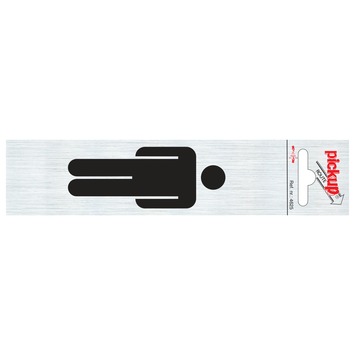 Het Pickup Alu deurbordje heren symbool staand 165x44mm is zelfklevend. Daardoor brengt u het deurbordje eenvoudig aan. De aluminiumlook geeft dit bordje een luxe, moderne en tijdloze uitstraling. Het bordje heeft een herkenbaar pictogram van een man. Zo communiceert u uw boodschap helder. Dit deurbordje maakt deel uit van een serie die bestaat uit diverse producten waarmee u eenvoudig richting of andere signalen kunt communiceren. Het Pickup Alu deurbordje heren symbool staand is snel te bevestigen en geeft duidelijk aan waar het herentoilet of de herenkleedkamer zich bevindt. Afmeting: 44mm lang en 165mm hoog.