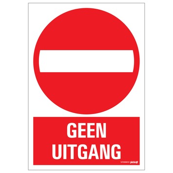Het Pickup bord geen uitgang 23x33cm is handig wanneer alleen een pictogram onvoldoende duidelijkheid biedt. Het Pickup bordje is gemaakt van rood en wit polystyreen (kunststof) en bevat zowel een pictogram als tekst. Dit hard plastic bordje maakt deel uit van een serie aanduidingen op gebied van verbod, gebod en waarschuwing. Het kwalitatief hoogwaardige bordje is eenvoudig ergens te bevestigen. Bevestig het bijvoorbeeld met schroeven of met montagelijm. Het kunststof is weersbestendig en verkleurt niet. Dit Pickup bord met pictogram en tekst maakt duidelijk dat op de betreffende plek geen uitgang is. Afmetingen: 23cm breed en 33cm hoog.