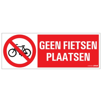 Dit Pickup bord verboden fietsen te plaatsen 33x12cm is gemaakt van polystyreen en maakt deel uit van een serie speciaal ontwikkelde borden voor aanduidingen op het gebied van verbod, gebod en waarschuwing. Het rood met witte, rechthoekige bord bevat een duidelijk pictogram en helder leesbare tekst. U kunt het kwalitatief hoogwaardige bordje eenvoudig bevestigen met schroeven of montagelijm. Dit Pickup bord verboden fietsen te plaatsen waarschuwt fietsers dat zij hun fiets niet op de betreffende locatie mogen parkeren. Afmetingen: 33cm breed en 12cm hoog.