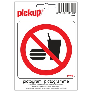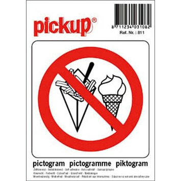 Het Pickup pictogram verboden voor consumpties 10x10cm is een zelfklevende vinyl sticker. Dit verbodsbord met een pictogram van een ijsje en patatje is zowel binnen als buiten te gebruiken, zo lang u deze op een glad oppervlak bevestigt. De sticker hecht uitstekend, maar is ook goed te verwijderen zonder lijmresten achter te laten. Deze sticker maakt deel uit van een assortiment Pickup stickers. Deze bieden duidelijkheid op het gebied van gebod, verbod, veiligheid, waarschuwing, brandbestrijding, vluchtweg of andere informatie. Voor elk probleem is een passende oplossing te vinden. Kortom, het Pickup pictogram verboden voor consumpties wijst erop dat u op de betreffende locatie geen consumpties mag gebruiken. Afmetingen: 10x10cm.