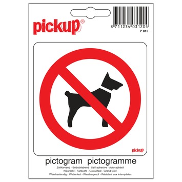 Het Pickup pictogram verboden voor honden 10x10cm is een zelfklevende vinyl sticker. Dit verbodsbord met een pictogram van een hond is zowel binnen als buiten te gebruiken, zo lang u deze op een glad oppervlak bevestigt. De sticker hecht uitstekend, maar is ook goed te verwijderen zonder lijmresten achter te laten. Deze sticker maakt deel uit van een assortiment Pickup stickers. Deze bieden duidelijkheid op het gebied van gebod, verbod, veiligheid, waarschuwing, brandbestrijding, vluchtweg of andere informatie. Voor elk probleem is een passende oplossing te vinden. Kortom, het Pickup pictogram verboden voor honden wijst erop dat op de betreffende locatie honden niet zijn toegestaan. Afmetingen: 10x10cm.