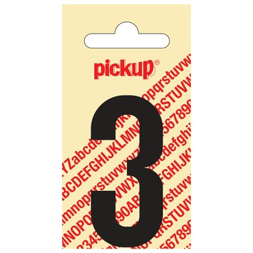 Het Pickup plakcijfer 3 zwart mat 60mm is een zelfklevende sticker met het cijfer 3. De Pickup stickers zijn zelfklevend, maar ook goed te verwijderen zonder lijmresten achter te laten. U kunt deze plakletter zowel binnen als buiten gebruiken op een glad oppervlak. De Pickup plakletters en -cijfers zijn leverbaar in verschillende kleuren en maten. Niet alleen ter verduidelijking op werk of thuis, maar ook leuk als decoratie. Met het matzwarte Pickup plakcijfer 3 heeft u een duidelijk, goed leesbaar cijfer dat u op elk gewenst glad oppervlak kunt plakken. Afmetingen: 60mm.
