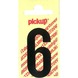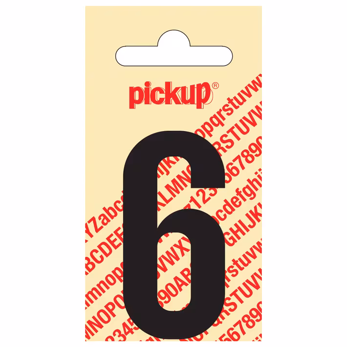 Het Pickup plakcijfer 6 zwart mat 60mm is een zelfklevende sticker met het cijfer 6. De Pickup stickers zijn zelfklevend, maar ook goed te verwijderen zonder lijmresten achter te laten. U kunt deze plakletter zowel binnen als buiten gebruiken op een glad oppervlak. De Pickup plakletters en -cijfers zijn leverbaar in verschillende kleuren en maten. Niet alleen ter verduidelijking op werk of thuis, maar ook leuk als decoratie. Met het matzwarte Pickup plakcijfer 6 heeft u een duidelijk, goed leesbaar cijfer dat u op elk gewenst glad oppervlak kunt plakken. Afmetingen: 60mm.