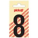 Het Pickup plakcijfer 8 zwart mat 60mm is een zelfklevende sticker met het cijfer 8. De Pickup stickers zijn zelfklevend, maar ook goed te verwijderen zonder lijmresten achter te laten. U kunt deze plakletter zowel binnen als buiten gebruiken op een glad oppervlak. De Pickup plakletters en -cijfers zijn leverbaar in verschillende kleuren en maten. Niet alleen ter verduidelijking op werk of thuis, maar ook leuk als decoratie. Met het matzwarte Pickup plakcijfer 8 heeft u een duidelijk, goed leesbaar cijfer dat u op elk gewenst glad oppervlak kunt plakken. Afmetingen: 60mm.