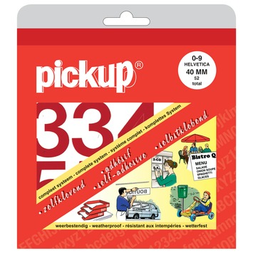 Met de Pickup plakcijfers 0-9 Helvetica rood 40mm plakt u zonder moeite cijfers op een glad oppervlak. De stickers zitten in een boekje, voorzien van een gebruiksaanwijzing en een siliconenvel met ruitjes. Hierop kunt u de rode cijfers netjes positioneren. Met het zelfklevende strookje brengt u vervolgens de cijfers over op het te beplakken voorwerp. De boekjes met plakletters en -cijfers zijn in verschillende kleuren, maten en lettertypes verkrijgbaar. U kunt ze zowel binnen als buiten gebruiken. Ze hechten prima, maar zijn ook goed te verwijderen zonder lijmresten achter te laten. De stickerboekjes zijn ideaal voor thuis, op kantoor, hobby of puur ter decoratie. Afmetingen: 40mm.