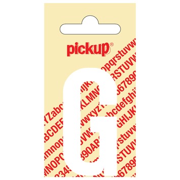 Pickup plakletter G wit mat 60mm plakt u eenvoudig op elk glad oppervlak. Deze sticker is van hoge kwaliteit en eenvoudig aan te brengen. In een handomdraai maakt u objecten duidelijker en beter leesbaar. Deze plakletter is weersbestendig en waterbestendig. U kunt hem dus ook buiten plakken. Waar u ook wilt plakken, de Pickup plakletter G wit mat 60mm is op zijn plek. Deze sticker hecht uitstekend, maar is toch goed te verwijderen. U blijft daardoor niet met vervelende lijmresten zitten. Kortom, Pickup plakletter G wit mat 60mm is een prima keuze voor kantoor, thuis, hobby en decoratieve uitingen.