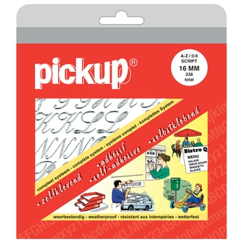 Pickup plakletters A-Z en cijfers 0-9 zilver 16mm plakt u eenvoudig op elk glad oppervlak. Het meegeleverde siliconenvel met ruitjes helpt u de cijfers en letters netjes recht te plaatsen. Hierdoor plakt u nooit scheef. In de verpakking vindt u ook een zelfklevend strookje. Hiermee brengt u de stickers simpel aan op het voorwerp dat u wilt beplakken. Pickup plakletters en cijfers A-Z en cijfers 0-9 zilver 16mm zijn geschikt voor binnen en buiten. Ze hechten uitstekend en toch zijn ze goed te verwijderen, zonder vervelende lijmresten achter te laten. Kortom, Pickup plakletters en cijfers A-Z en cijfers 0-9 zilver 16mm zijn een prima keuze voor kantoor, thuis, hobby en decoratieve uitingen.