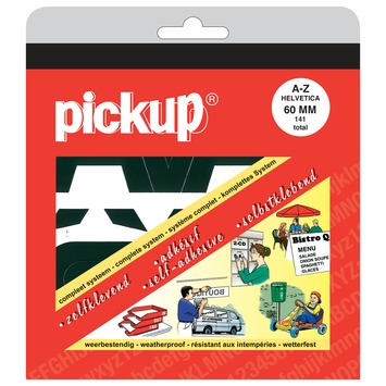 Pickup plakletters A-Z Helvetica zwart 60 mm plakt u eenvoudig op elk glad oppervlak. Het meegeleverde siliconenvel met ruitjes helpt u de letters netjes recht te plaatsen. Hierdoor plakt u nooit scheef. In de verpakking vindt u ook een zelfklevend strookje. Hiermee brengt u de letters simpel aan op het voorwerp dat u wilt beplakken. Pickup plakletters A-Z Helvetica zwart 60 mm hechten uitstekend en toch zijn de stickers goed te verwijderen zonder vervelende lijmresten achter te laten. Kortom, Pickup plakletters A-Z Helvetica zwart 60 mm zijn een prima keuze voor kantoor, thuis, hobby en decoratieve uitingen.