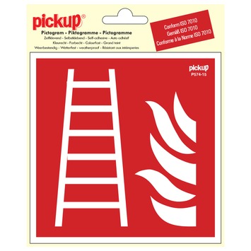 Pickup sticker brandladder 15x15cm plakt u eenvoudig op elk glad oppervlak. Deze sticker is speciaal ontwikkeld voor aanduidingen op gebied van vluchtweg en brandbeveiliging en voldoet aan de nieuwste ISO 7010 norm. Alle uitingen moeten hier in de toekomst aan voldoen. Deze zelfklevende aanduiding biedt een oplossing daar waar duidelijkheid van levensbelang is. De sticker is weersbestendig en waterbestendig. U kunt de Pickup sticker brandladder 15x15cm dus ook buiten plakken. Deze vinyl sticker hecht uitstekend, maar is toch goed te verwijderen. U blijft daardoor niet met vervelende lijmresten zitten. Kortom, Pickup sticker brandladder 15x15cm is een prima keuze wanneer veiligheid voorop staat.