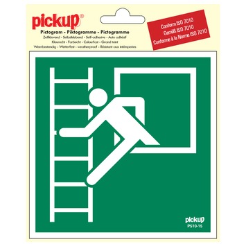 Pickup sticker vluchtweg met noodladder 15x15cm plakt u eenvoudig op elk glad oppervlak. Deze sticker is speciaal ontwikkeld voor aanduidingen op gebied van vluchtweg en brandbeveiliging en voldoet aan de nieuwste ISO 7010 norm. Alle uitingen moeten hier in de toekomst aan voldoen. Deze zelfklevende aanduiding biedt een oplossing daar waar duidelijkheid van levensbelang is. De sticker is weersbestendig en waterbestendig. U kunt de Pickup sticker vluchtweg met noodladder 15x15cm dus ook buiten plakken. Deze vinyl sticker hecht uitstekend, maar is toch goed te verwijderen. U blijft daardoor niet met vervelende lijmresten zitten. Kortom, Pickup sticker vluchtweg met noodladder 15x15cm is een prima keuze wanneer veiligheid voorop staat.