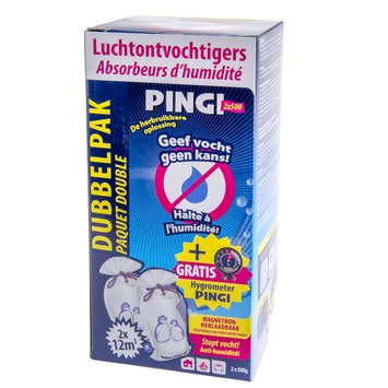 Pingi luchtontvochtiger 2x500gr + hygrometer