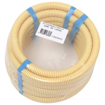 De Pipelife flexibele buis PVC creme is 5 meter lang en heeft een diameter van 5/8inch (16mm). Deze Pipelife-buis heeft een speciale LF-innovatie dat staat voor low friction (lage weerstand). De buis heeft aan de binnenzijde een speciale glijlaag die zorgt voor minimale weerstand. Hierdoor is draad aanzienlijk sneller en gemakkelijker te trekken en is er minder kans op beschadiging. De buis is voorzien van een KEMA-keurmerk.