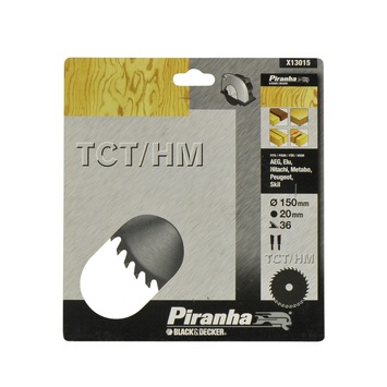 Het Piranha cirkelzaagblad TCT x13015-xj is geschikt voor het zagen van zachthout en multiplex. Het zaagblad heeft 36 kleine tanden die zorgen voor een fijne afwerking van de zaagsnede, optimaal bij het afkorten van hout. Het cirkelzaagblad 13015 heeft een diameter van 150mm en een asgat van 20mm. Dit zaagblad is onder meer geschikt voor de AEG HK45A en de SKIL 1850H.